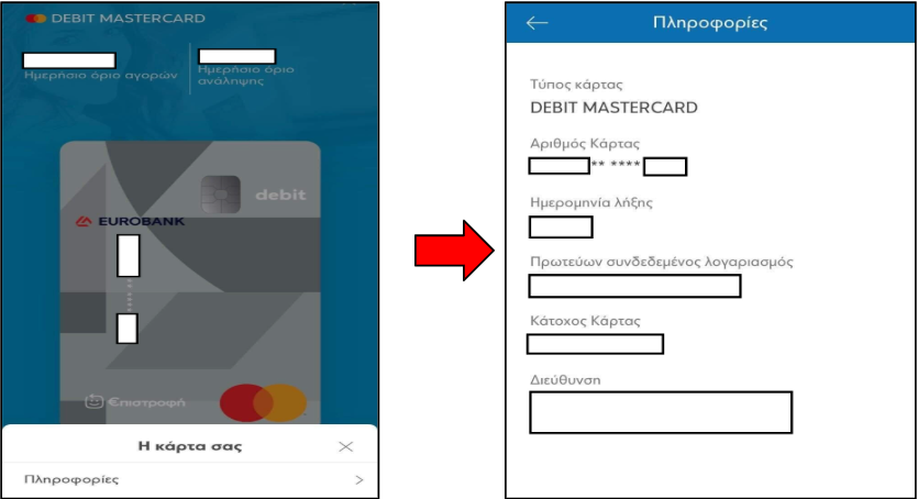 6 πρώτα και 4 τελευταία ψηφία της, το ονοματεπώνυμο του και η ημερομηνία λήξης