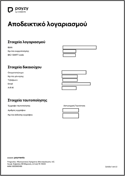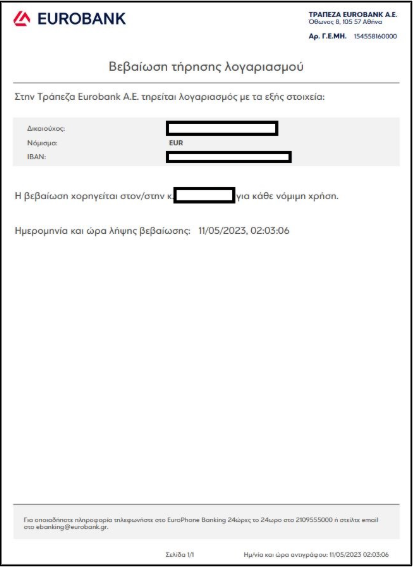 bank statement με τα στοιχεία όπως αναφέρονται παραπάνω