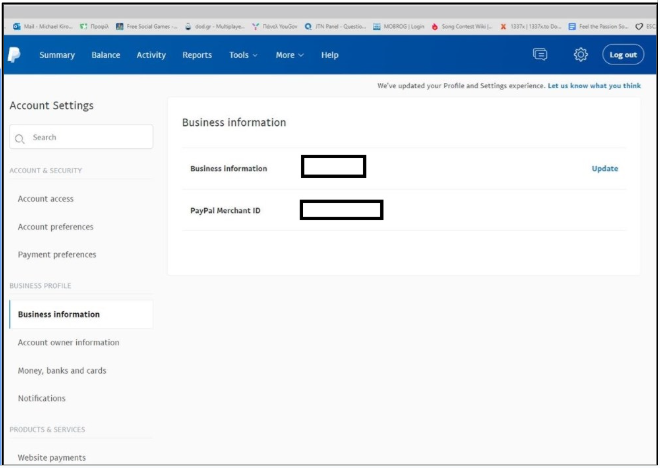 2. Θα χρειαστεί να φαίνεται ολόκληρη η σελίδα με στόχο να φαίνεται το Paypal Merchant ID