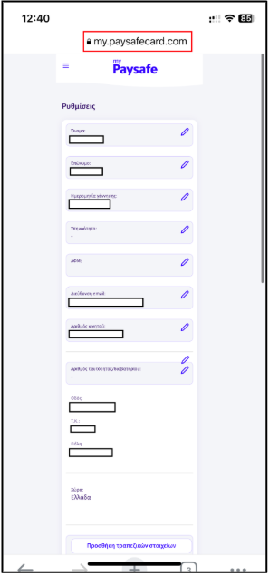 • Από PC και browser κινητού: Επιλέγουμε το logo του λογαριασμού > Ρυθμίσεις/Settings > Προσωπικά στοιχ/Pers Details