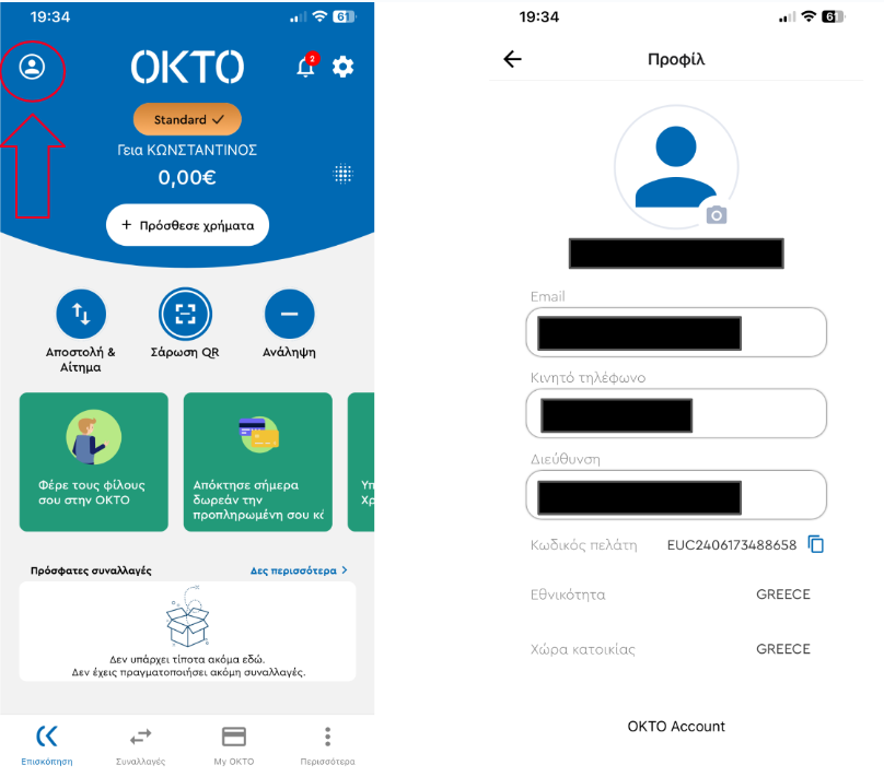 1. Θα χρειαστεί αποστείλεις ένα screenshot από την εφαρμογή της Okto Wallet από το την κατηγορία “Προφίλ” με πλήρης κάλυψη στοιχείων