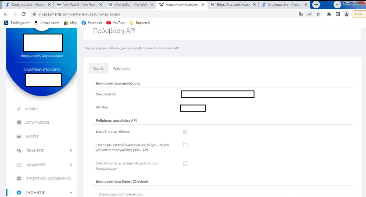 2. Από το μενού Ρυθμίσεις > Πρόσβαση API: Θα χρειαστεί να είναι εμφανή όλα τα στοιχεία: Merchant ID, API Key, Holder’s name.
